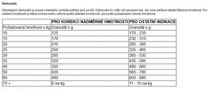 Uvedené dávkování je v některých případech potřeba snížit, aby bylo dosaženo úbytku hmotnosti.