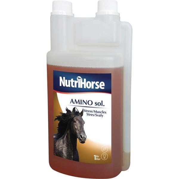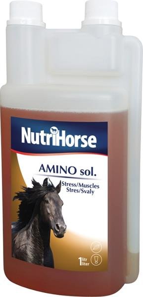 Nutrihorse Aminosol je komplex vitaminů skupiny B, aminokyselin a solí makroprvků v tekuté formě.