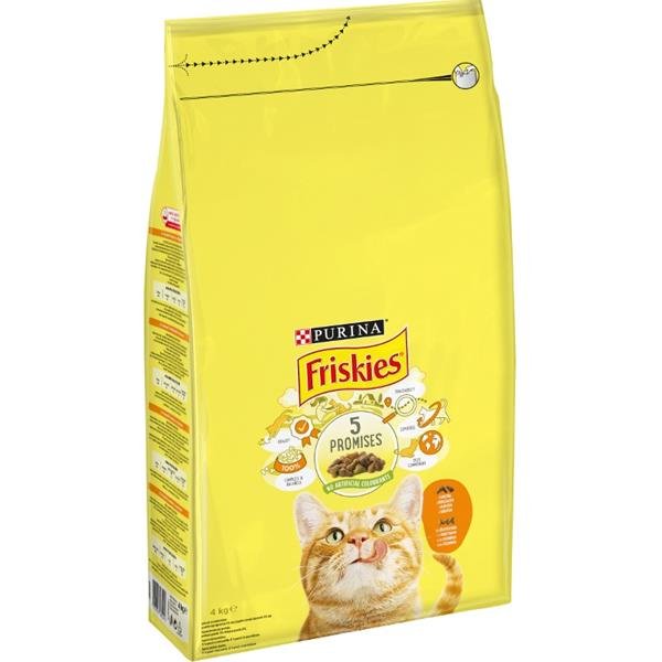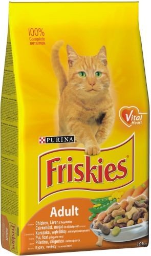 obiloviny, maso a vedlejší výrobky živočišného původu (10 %*), bílkovinné extrakty rostlinného původu, oleje a tuky, vedlejší výrobky rostlinného původu, kvasnice, minerální látky a zelenina (zelené, oranžové a bílé granule: 0,13 % sušené zeleniny, odpovídající 1 % zeleniny). *odpovídající 20 % rehydratovaného masa a vedlejších výrobků živočišného původu, tmavě a světle hnědé granule: minimálně 4 % kuřete.