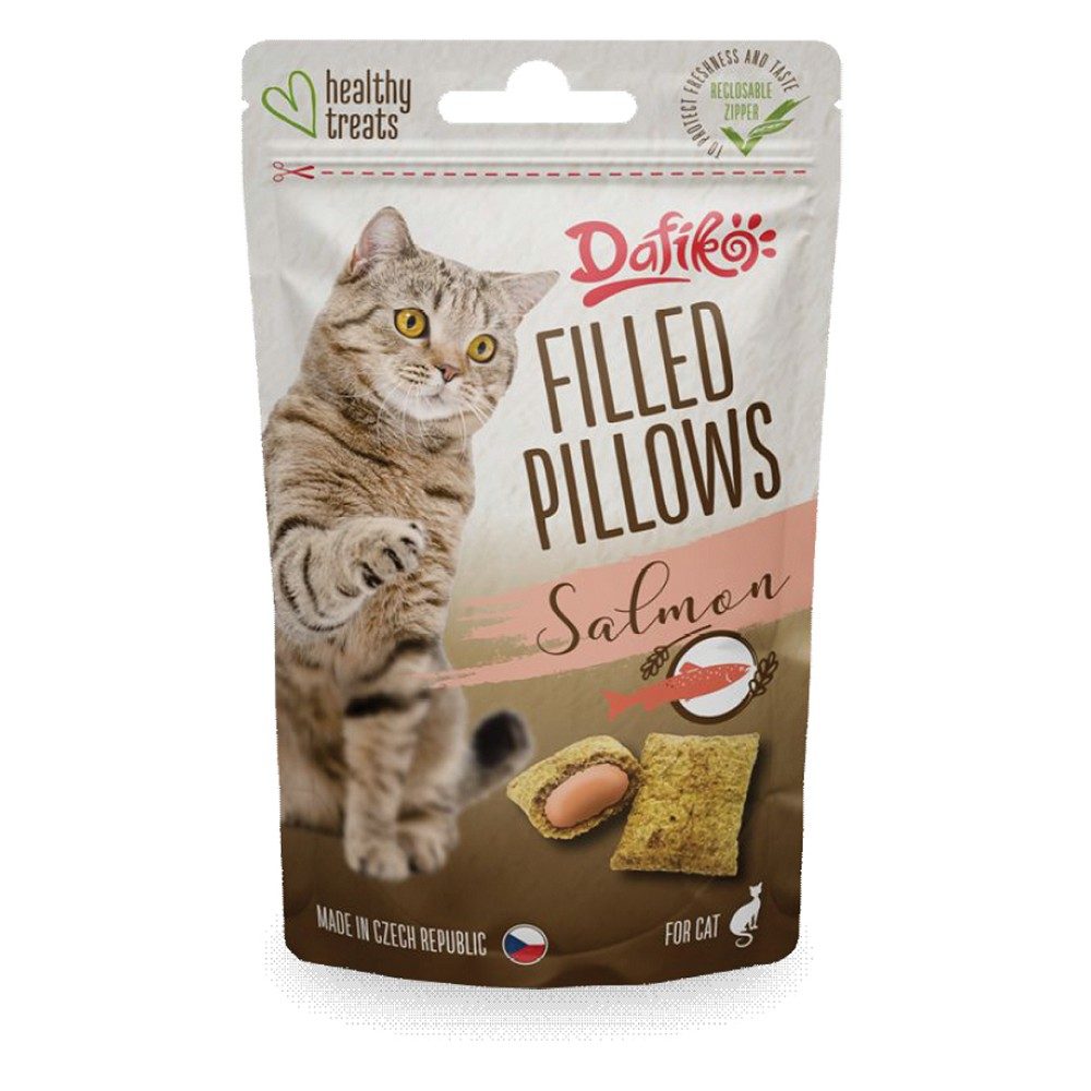 Pamlsek pro kočky ve formě plněných lososových polštářků