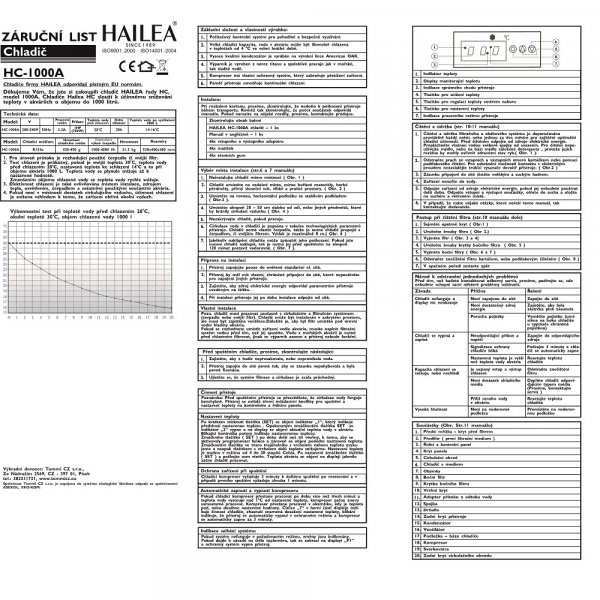 - výparník z vysoce kvalitního titanu předurčuje jejich použití ve sladkovodní i mořské akvaristice - tichý provoz v porovnání s podobnými produkty - digitální kontrolní panel pro nastavení požadované teploty - nadčasový design za přijatelné ceny - životnímu prostředí neškodné chladící medium R134a Technická data modelu HC-1000A: pro akvária: 1000 l příkon: 1 HP (750 W)pro výkon výkon čerpadla: 1500 - 4000 l/h hmotnost: 31,3 kg hmotnost chladícího média: 420 - 450 g rozměry: 520 x 400 x 480 mm