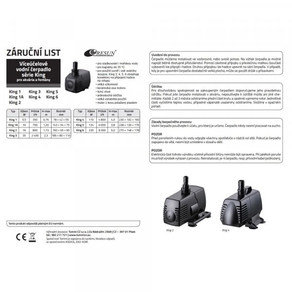 - pracuje ponořené, ale pokud je protékající vodou dostatečně chlazeno ( max. teplota čerpané vody 35°C), je možné ho použít i vně nádrže