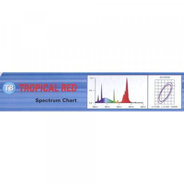 Hailea zářivky Tropical Red model T8 s důrazem na červené a modré spektrum pro podporu fotosyntézy.