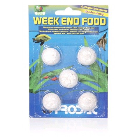 Krátkodobé koncentrované krmivo pro použití při kratší nepřítomnosti (např. víkend). Krmivo se pomalu rozspouští ve vodě a tím zajisťuje vyváženou potravu pro všechny druhy akvarijních ryb.