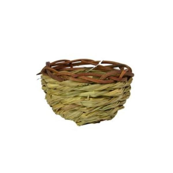 Travní hnízdo s proutěným lemem vhodné pro kanárky a jiné drobné exoty (Zebřičky, Chůvičky,…). Průměr: 10 cm