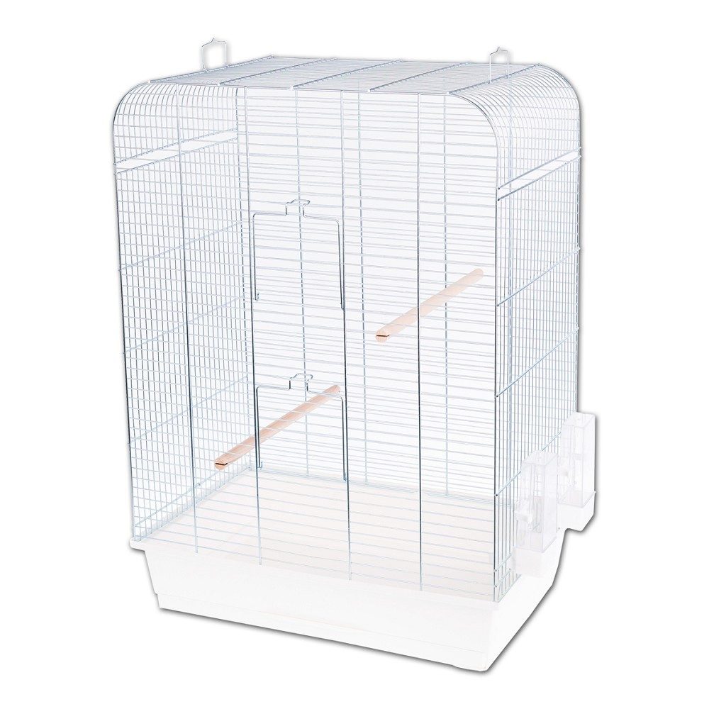 Součástí klece je základní vybavení (2 x krmítko, 2 x bidýlko).