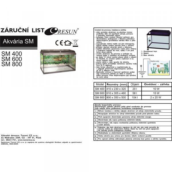 Skleněný akvarijní komplet Resun SM 600 s osvětlením.