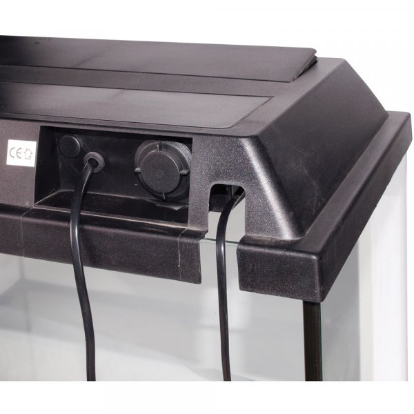 Voděodolné víko s reflexním štítem jednoduše otevřete a nasypete denní porci krmení. Díky rámečku pod akváriem nikdy nepoškrábete nábytek. Vypínač osvětlení.