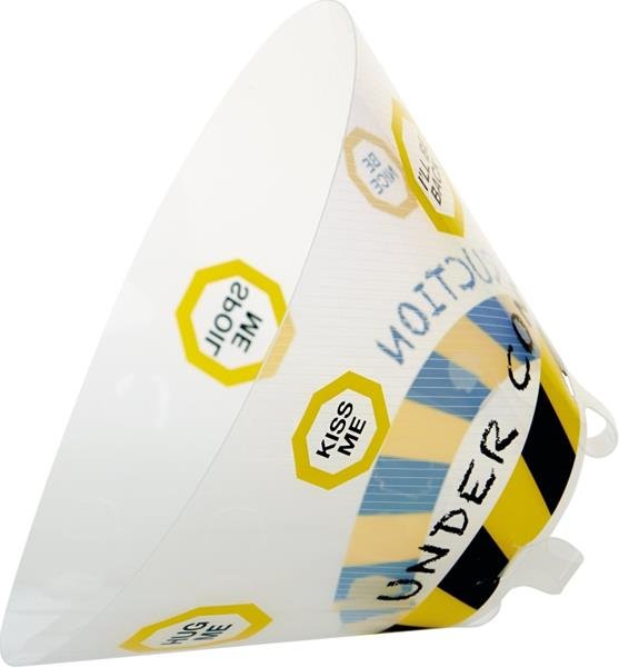 Límec BUSTER Design Collar je vtipně a nápaditě potištěn s tématikou "v rekonstrukci" a s roztomilými nápisy nabádajícími k ohleduplnosti ke psům zotavujícím se po zákroku u veterináře