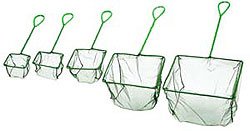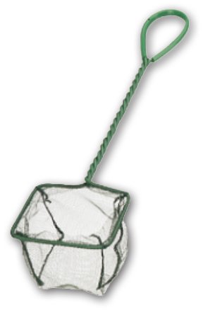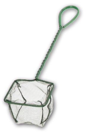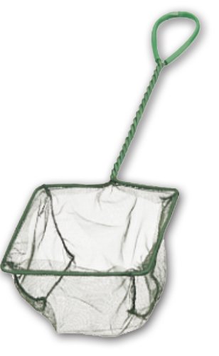 Díky obdélníkovému tvaru lze se síťkou snadno manipulovat i v rozích nádrže. Síťka je v zelené barvě, která rybky zbytečně neleká.