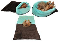 Lze ho využít jako 3 v 1 a to pelíšek o průměru 45 cm, spací pytel o velikosti 60 x 75 cm a nebo můžete mít deku, která se vždycky hodí o rozměru 60 x 150 cm.