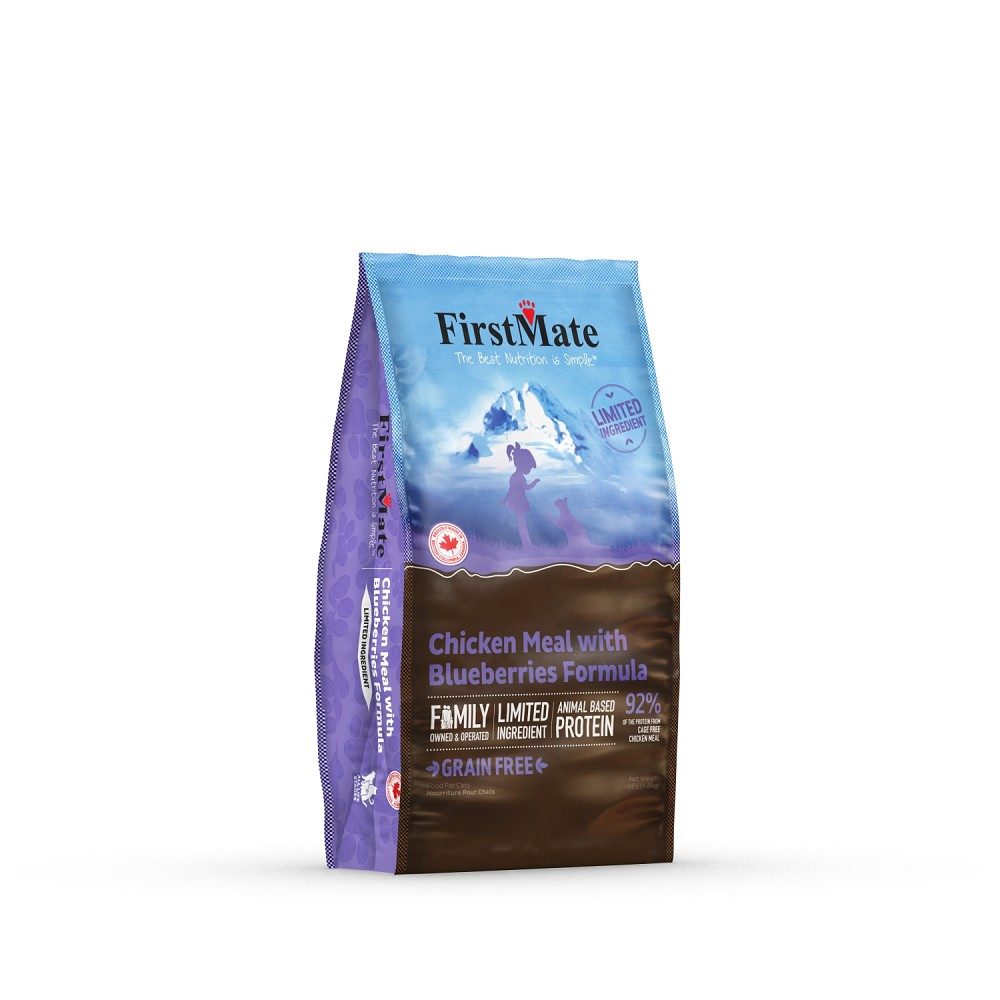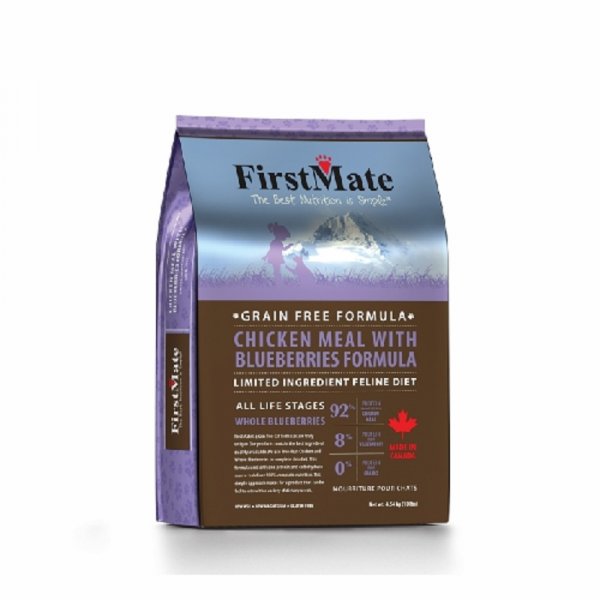 FirstMate Kuřecí s borůvkami - kompletní bezlepkové krmivo pro dospělé kočky s citlivým trávením.