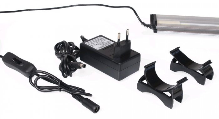 Obsah balení: osvětlovací rampa, měnič, stojánek