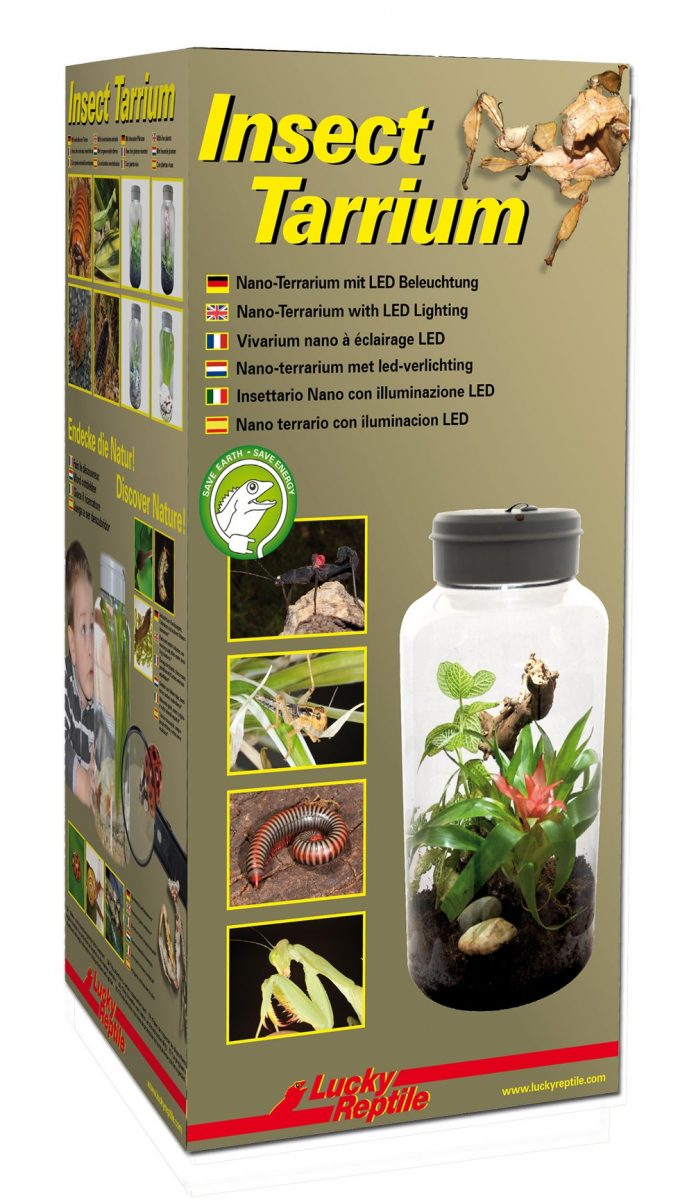 Plastové insektárium s vestavěným denním i nočním LED osvětlením je ideální pro děti, nebo jako doplněk na pracovní stůl - kousek živé přírody. InsectTarrium je určeno převážně pro nejrůznější druhy bezobratlých, jako jsou strašilky, pakobylky, lupenitky, kudlanky, ale také stonožky a mnohonožky, různé druhy brouků či menších pavouků. Je vhodné i pro akvaticky žijící druhy.
