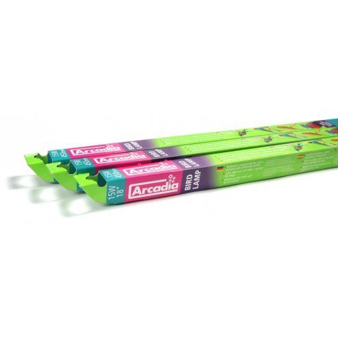 Teplota barev, výdej UV záření a světelné spektrum jsou kombinovány právě tak, aby vyhovovaly různým druhům chovaných ptáků. Arcadia Bird Lamp obsahuje speciální plyny, aby dokázala napodopit přirozené světlo. 12% vydávaného UV zahrnuje 2.4% UVB.