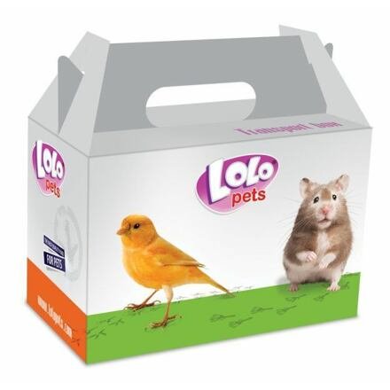 Kartonová krabička pro krátkodobou přepravu drobného zvířete.