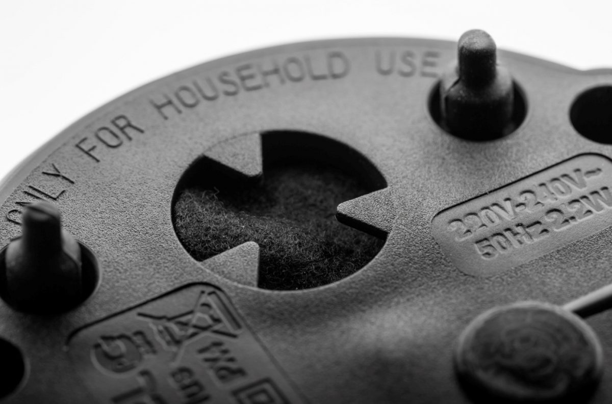Tělo se vyznačuje elegantním černobílým designem. Díky zaoblenému tvaru disku se zařízení snadno udržuje v čistotě.
