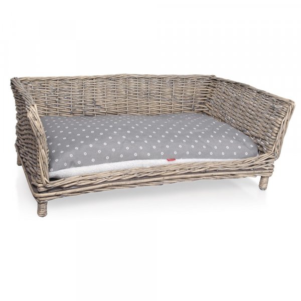 Proutěn kanape pro psy s povrchovou úpravou ve stylu Provence. - pevné dno - polštář s bílým umělým beránkem Rozměr: 90x54x35cm Proutěn kanape pro psy s povrchovou úpravou ve stylu Provence.