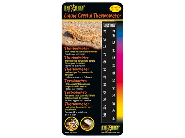 Snadné použití na hladký povrch. Teploměr nedávejte na nechladnější ani na nejteplejší místo terária.