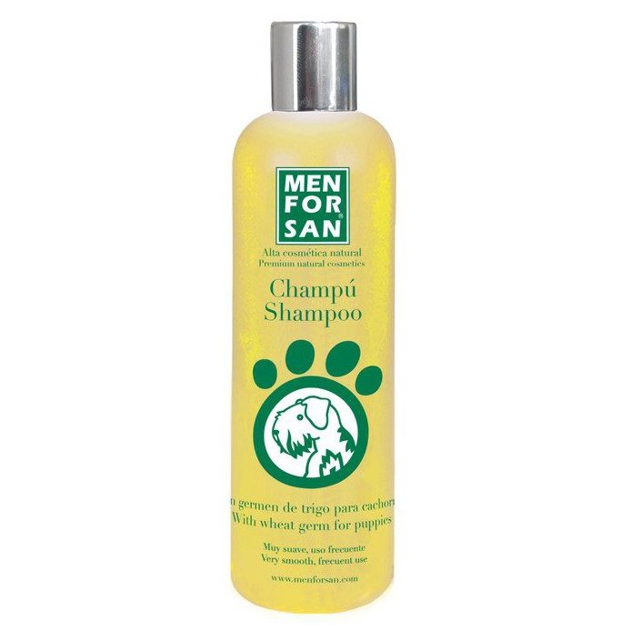 Jedinečný šampon Menforsan je velmi jemný a vyrobený z pšeničných klíčků. Štěňátka potřebují každodenní starostlivost aby byla jejich srst jemná a nádherně zbarvená. Hravá, neposedná štěňátka dávají srsti pořádně zabrat a ta mění svou původní barvu. Pravidelnou péčí s kvalitním šamponem určeným právě pro ně docílíte, že vám z vašeho štěněte vyroste nádherný pes či fena s krásnou jemnou a lesklou srstí zářící zdravím. Tento velmi jemný šampon z pšeničných klíčků splňuje přísné standardy v péči o psí mláďata, která mají citlivou kůži a zároveň hůře snáší jakékoliv chemické přípravky. Proto jsou tu šampony Menforsan se svým citlivým složením, které nedráždí oči a sliznici. Pšeničné klíčky obsahují užitečné živiny k udržení a obnovení pružnosti srsti, obsahují vitamíny skupiny E, B1, B2 a B6, kyselinu listovou a bílkoviny. Silný antioxidační účinek výtažku z klíčků pomáhá stimulovat růst srsti. Šampon má vyvážené pH, proto je vhodný pro pravidelné a časté užívání. Srst našeho štěňátka bude po koupeli krásně hydratovaná, hladká a příjemná na dotek.