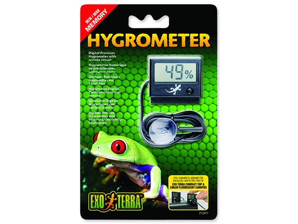 Snadné použití na hladký povrch. Vyberte místo ve středu terária a vlhkoměr přitiskněte na povrch.