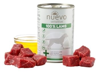 72 % jehněčího masa a droby, jako např. čerstvá srdce, játra a plíčky, představují dokonalý základ pro psy s citlivým žaludkem. Jeho vyvážené složení představuje optimální zdroj výživy. Velmi kvalitní lněný olej přispívá k lesklé srsti a psovi dodává důležité mastné kyseliny omega 3 a omega 6. Krmivo nuevo sensitive neobsahuje žádné obiloviny ani lepek.