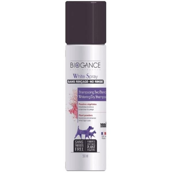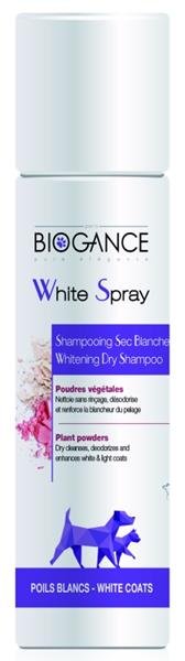 Biogance White Spray je speciální suchý šampon ve spreji pro psy i kočky se světlou a bílou srstí.