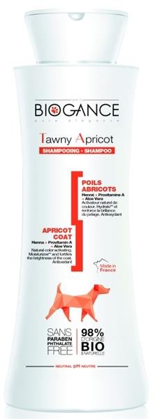 Šampon Biogance Tawny Apricot pro psy s blond, žlutou, zlatou, žlutohnědou a meruňkovou barvou srsti.