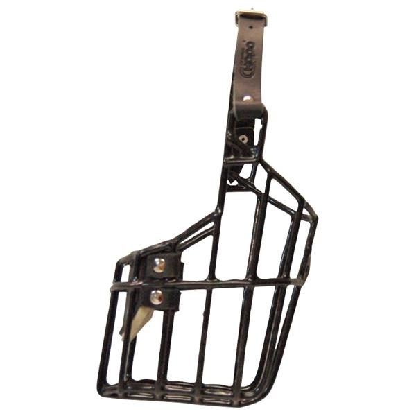 Kovový náhubek s upínacími řemínky z barexu. Kvalitní gumoplastem potažený kov zajišťuje kvalitu a dlouhověkost výrobku.