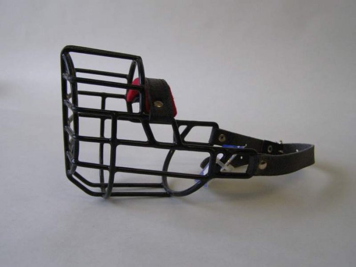Kovový náhubek s upínacími řemínky z barexu. Kvalitní gumoplastem potažený kov zajišťuje kvalitu a dlouhověkost výrobku.
