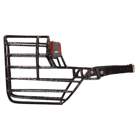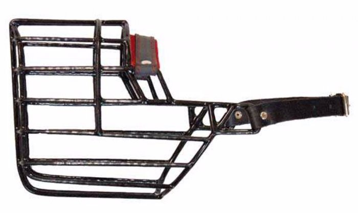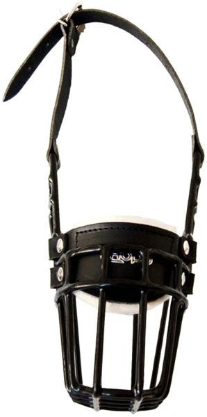 Kovový náhubek s upínacími řemínky z barexu. Kvalitní gumoplastem potažený kov zajišťuje kvalitu a dlouhověkost výrobku.