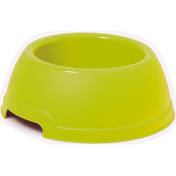Plastová miska o objemu 420 ml, žluté barvy. Miska má na spodní straně protiskluzovou vrstvu. Miska je vhodná jak na vodu, tak i na krmivo.