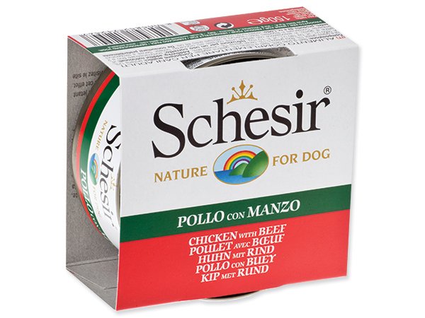 kuře (min. 58%), hovězí (min. 6%), rýže (1,5%), rostlinné želírovací prostředky (povolený EU).