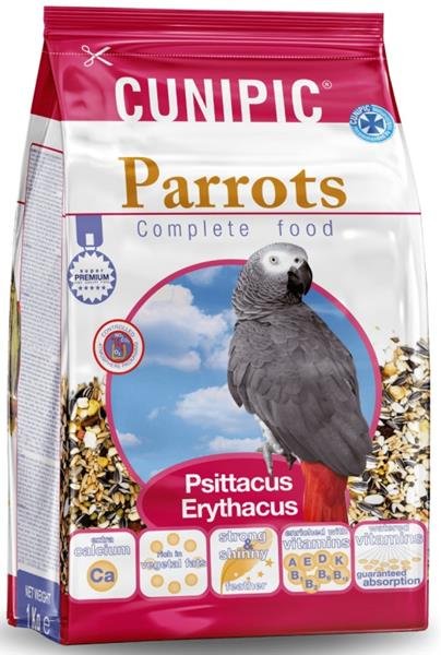 Žíhaná slunečnice, světlice barvířská, neloupaná rýže, pohanka, oves, kukuřice, žluté proso, bílá slunečnice, sója mungo, lesklice kanárská, arašídy (se slupkou), ječmen, nahý oves, rýže, extrudované peletky, šípky, konopné semínko, cedrové oříšky, grit z mořských mušlí, dýňová semena, svatojánský chléb, rozinky, hrachové vločky, pufovaná kukuřice, žaludeční kamínky, pomerančové aroma, vitamíny.