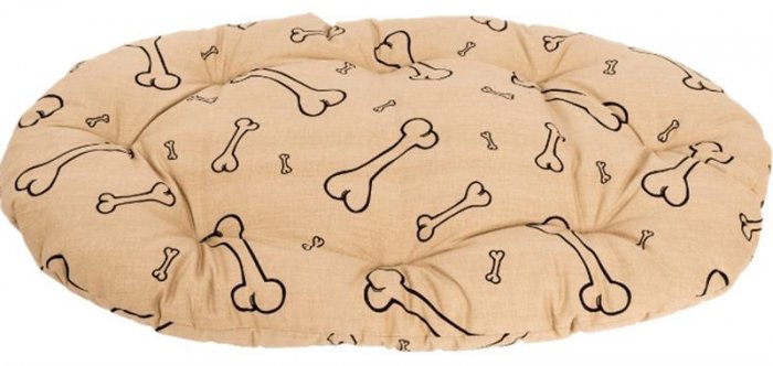Pohodlný a kvalitní polštář vyrobený z bavlněné látky s potiskem kostí, vyplněný drceným molitanem.