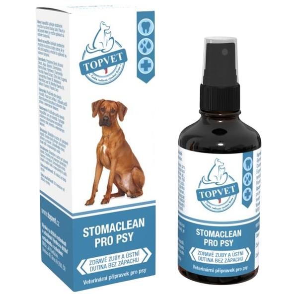 ÚSTNÍ SPREJ STOMACLEAN je prostředek pro péči o ústní dutinu psů. Díky unikátní kombinaci účinných látek (propolis, máta, TTO, hřebíček aj.), samozřejmého taninu, fluoru a kyseliny citronové, má pozitivní vliv nejen na stav dásní a sliznic, ale i zubů. Omezuje tvorbu zubního kamene, plaku i zubního kazu, pomáhá odstranit již vytvořený zubní kámen, prodlužuje efekt odstranění zubního kamene, vykazuje hojivý a regenerační účinek na dásně a další měkké tkáně v dutině ústní, např. při zánětu. V neposlední řadě odstraňuje nepříjemný zápach z dutiny ústní.