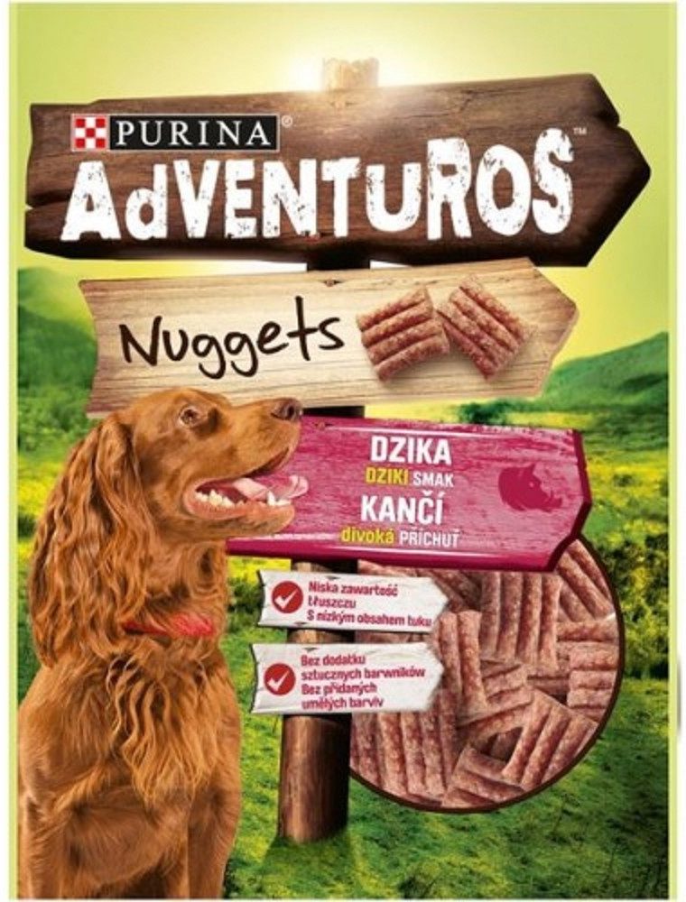 Purina Adventuros vytvořila svačinky s divokou chutí a jedinečnou texturou, které uspokojí váš hlad po dobrodružství. Ideální na výlety, cestování a školení. Váš pes je bude milovat. Jsou to chutné pamlsky pro každou příležitost, díky pohodlnému tvaru nuget se vejdou i do kapsy.