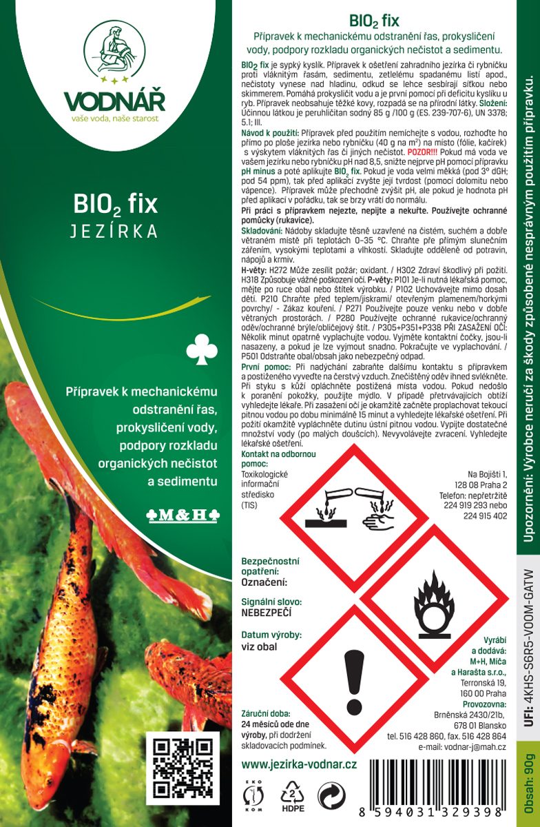 Pozor!!! Pokud má voda ve vašem jezírku nebo rybníčku pH nad 8,5, snižte nejprve pH pomocí přípravku pH minus a poté aplikujte Bio2 fix.