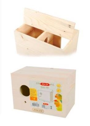 Budka do klece je určena pro papouška Agapornis. Je dvoukomorová, s bidýlkem a otvorem pro snadné čištění. Vyrobena z masivního dřeva vytváří přirozený přírodní vzhled.