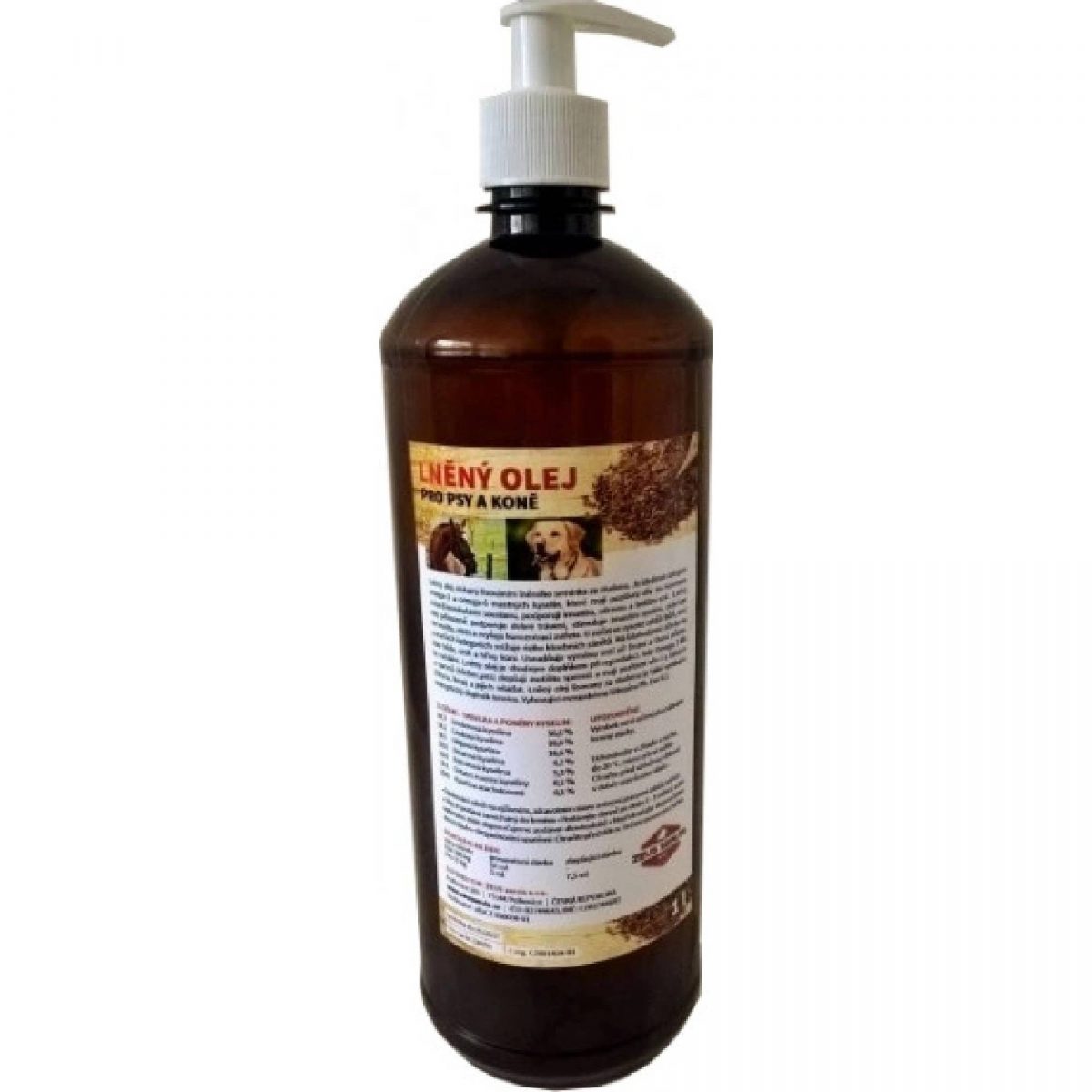 Je ideálním zdrojem omega-3 a omega-6 mastných kyselin, které mají pozitivní vliv na nervovou a kardiovaskulární soustavu, podporují imunitu, zdravou a lesklou srst . Lněný olej přirozeně podporuje dobré trávení, stimuluje imunitní systém, zmírňuje nervozitu, stres a zvyšuje koncentraci zvířete. U zvířat ve vysoké zátěži (kůň, pes) a starších kategoriích snižuje riziko kloubních zánětů. Má blahodárné účinky na stav kůže, srsti a hřívy koní. Usnadňuje výměnu srsti při línání a tlumí příznaky svědění. Lněný olej je vhodným doplňkem při reprodukci, kde Omega 3 MK u samců (hřebec,pes) zlepšují motilitu spermií a mají pozitivní vliv i u březích (klisna, fena) a jejich mláďat. Lněný olej lisovaný za studena je také vynikající energetický doplněk krmiva. Vyhovující evropskému lékopisu Ph. Eur 8.2.