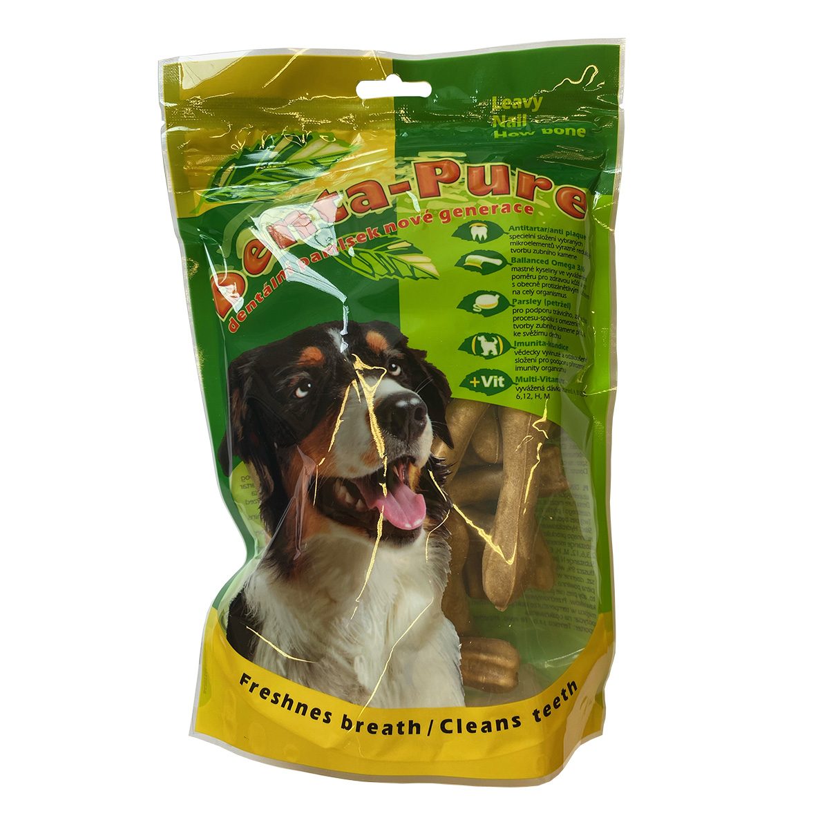 Pochoutka na čištění zubů pro psy. Tvrdý, pevný, funkční pamlsek pro psa dokáže notnou chvíly odolávat psím zubům. Při žvýkání se pevný pamlsek tře o povrch zubů a tím je z nich sdírán zubní plak. Je tedy funkční odměmnou, která napomáhá při prevenci proti zubnímu plaku a zubnímu kameni. Vzhledem k nízkému obsahu tuků může být podáván i psům s nadváhou. S příchutí mléka.
