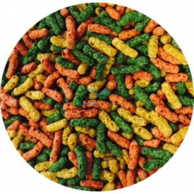 - Obsahuje barevnou směs pelet: červené pro vybarvení, zelené s rostlinnou složkou, žluté s proteiny.