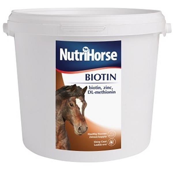 Speciální doplněk pro podporu obnovy kopytní rohoviny s vysokým obsahem biotinu, zinku a DL-metioninu. NutriHorse BIOTIN je určen k úhradě zvýšené potřeby živin pro správný vývoj kopyt. Zdravá kopyta jsou nesmírně důležitá pro každého koně a NutriHorse Biotin obsahuje základní trojkombinaci (biotin, DL-methionin, org. vázaný zinek), která zajištuje správný růst a vývoj struktury rohoviny kopyt. Spolu s dalšími složkami (vitamin B6, org. vázaná med a L-lysin) tvoří kompletní doplněk pro péči o kopyta vašeho koně.
