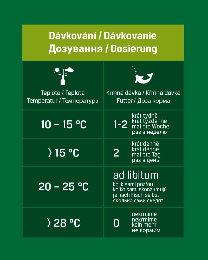 Krmivo je vyváženo, tak aby ryby zužitkovaly vše, bez zbytečného odpadu, který by zatěžoval filtraci a znečišťoval jezírko. Receptura byla tvořena pro dosažení výborné kondice, zdravotní odolnosti a optimálního růstu