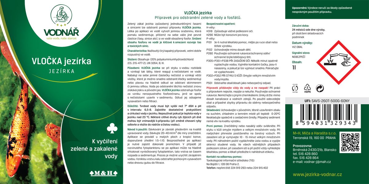 Zelený zákal jezírka způsobený jednobuněčnými řasami a sinicemi lze odstranit pomocí přípravku VLOČKA jezírka VLOČKA jezírka se při styku s vodou rozkládá a vznikají tak látky, které reagují s nečistotami ve vodě.