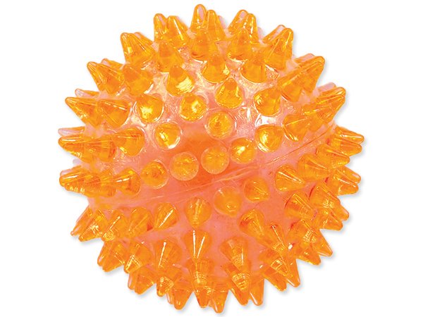 Gumový míček s bodlinami a zvukem. Průměr: 6 cm.