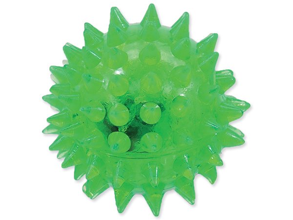 Gumový míček s bodlinami a blikajícím světlem. Průměr: 5 cm.