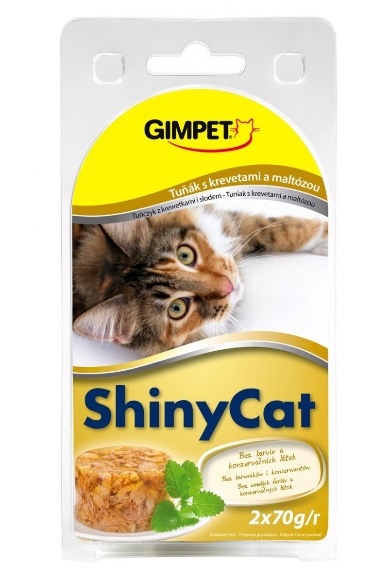 Konzervy Shiny Cat mají vysoký obsah masa, lehce zalitého v rosolu pro udržení tvaru, čerstvosti a zdůraznění atraktivní chuti. V této konzervě najde Vaše kočka lahodnou kombinaci tuňáka, krevet a maltózy pro nezapomenutelný požitek z krmení.