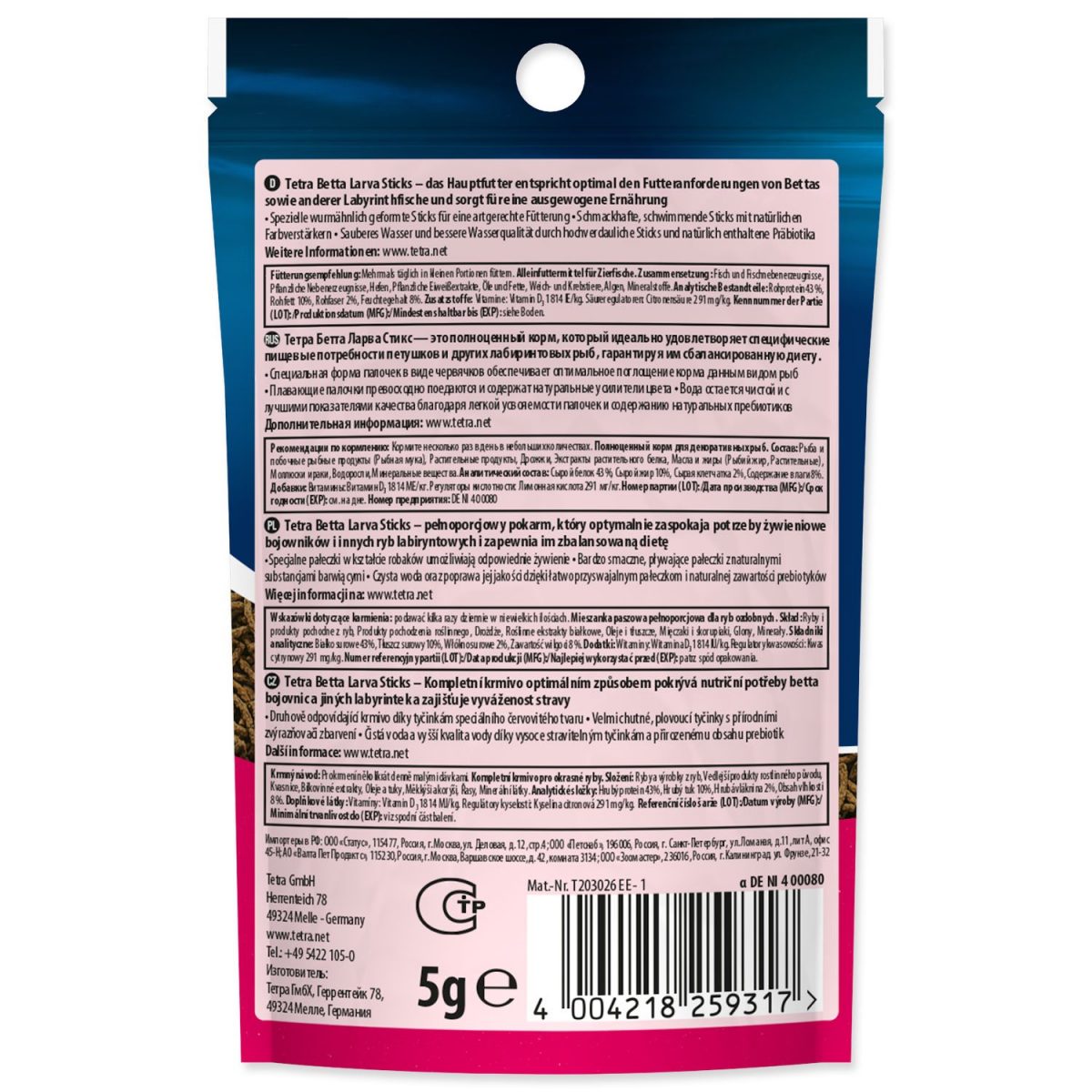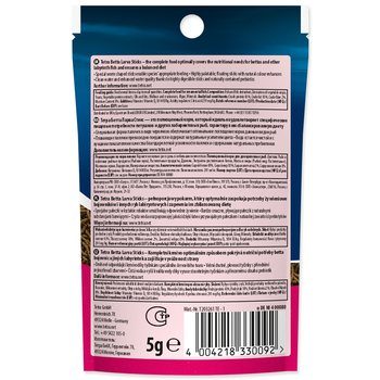 Nové krmivo Tetra Betta Larva Sticks nabízí druhově odpovídající krmivo, které ideálním způsobem pokrývá nutriční potřeby tropických ryb rodu betta a jiných labyrintek. Toto speciální krmivo připomíná svou velikostí, tvarem a barvou komáří larvy, jednu z nejoblíbenějších rybích pochoutek.