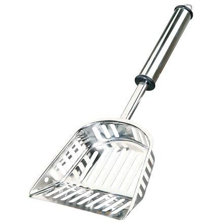 Lopatka z oceli na vybírání trusu z toalety. Rozprašovací lopatka pro všechny běžné druhy podestýlky vyrobená z nerezové oceli.
